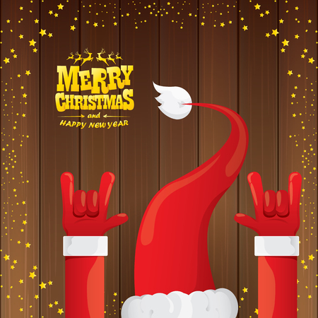 雪の結晶と夜の紫色の背景に書歌の挨拶テキストとベクトル漫画ロックンロールサンタクロース メリークリスマスロックンロールパーティーポスターデザインのイラスト素材 ベクタ Image