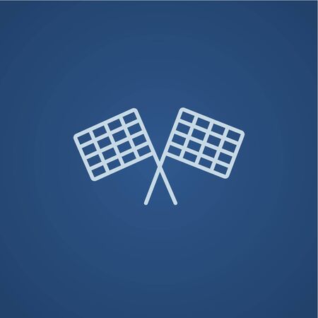 2 つのチェッカーフラッグ ライン Web モバイルのアイコンとインフォ グラフィック ベクトル ライト青アイコン青の背景に分離されました のイラスト素材 ベクタ Image